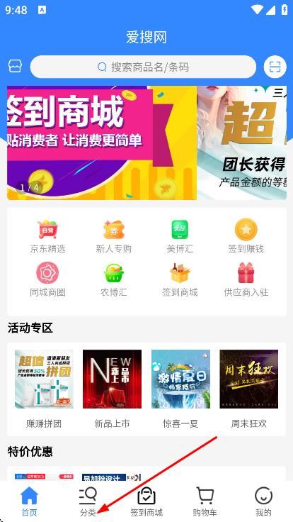 1、进入首页,点击底部分类按钮,可进入分类页面。