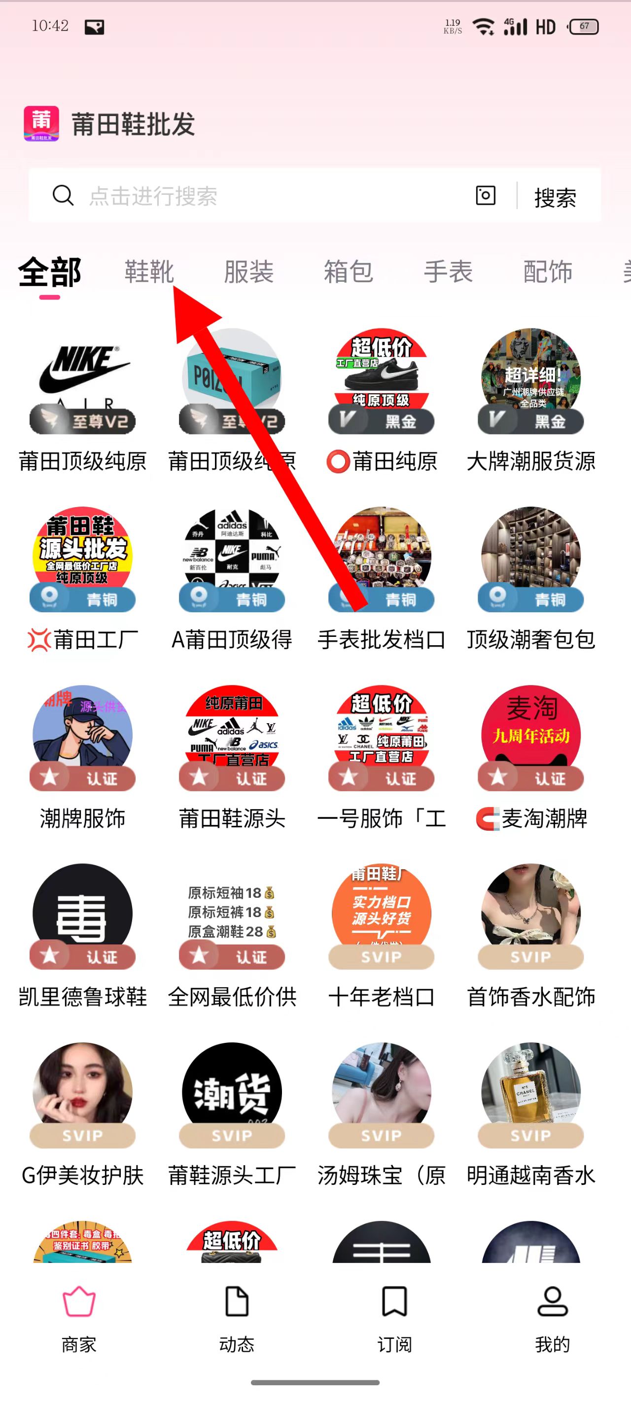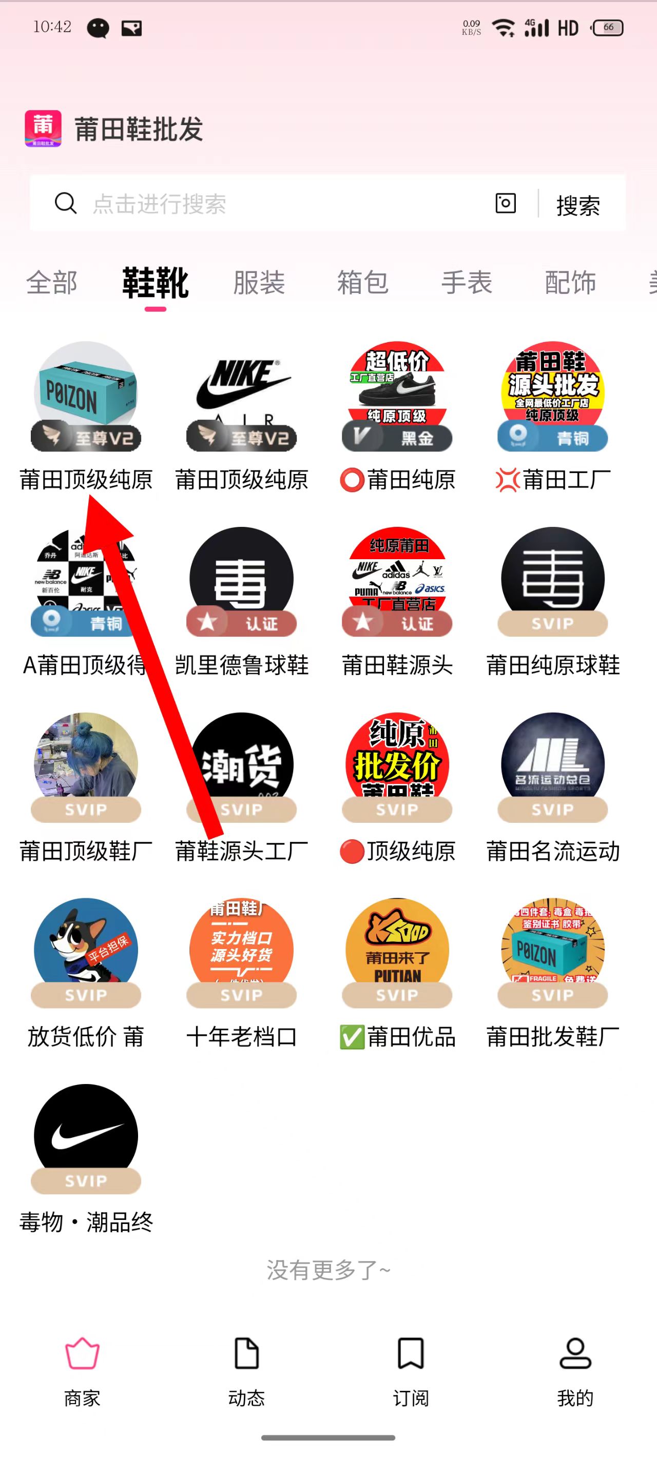 2、在鞋靴商家列表页,选择想要的商家,点击进入商家主页。