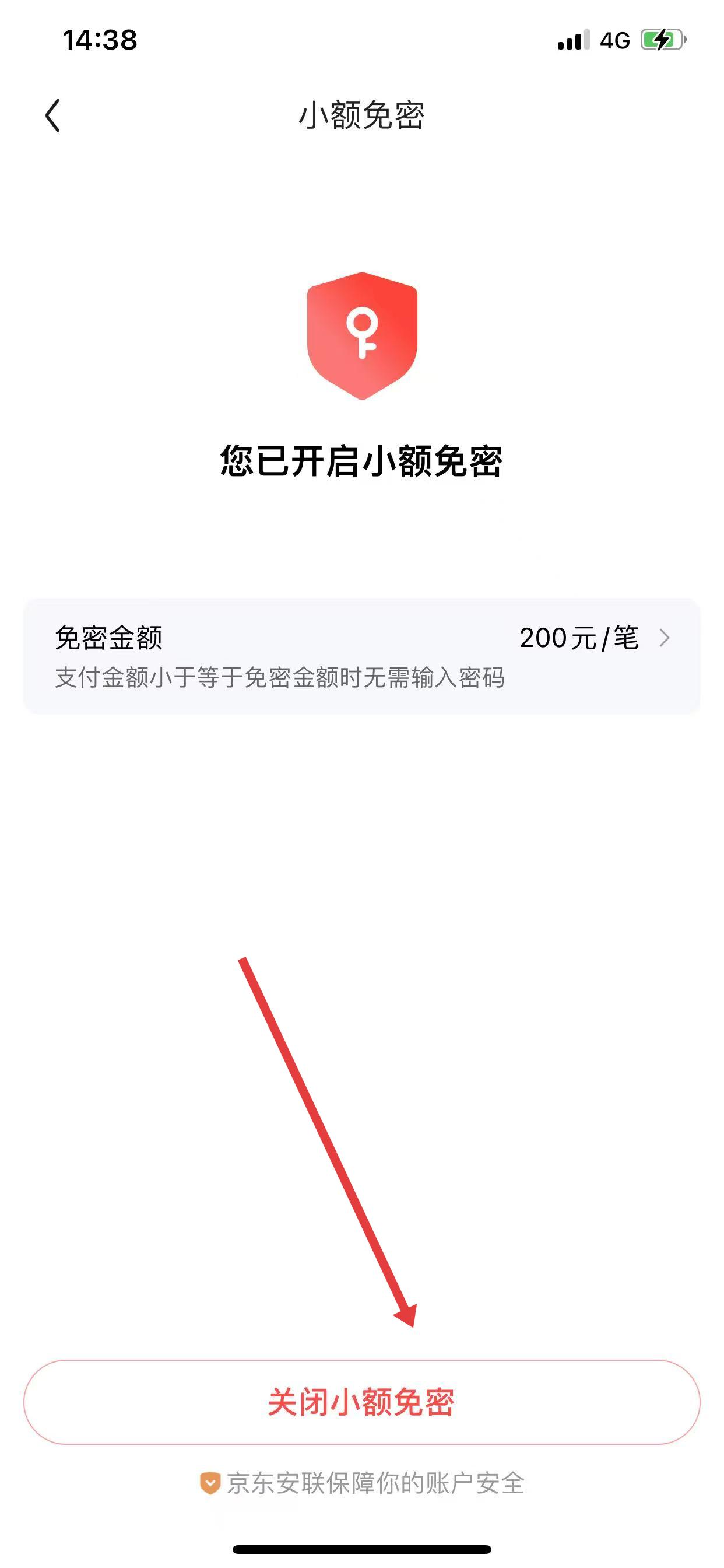 3、点击下方关闭小额免密按钮,按提示操作完成关闭。