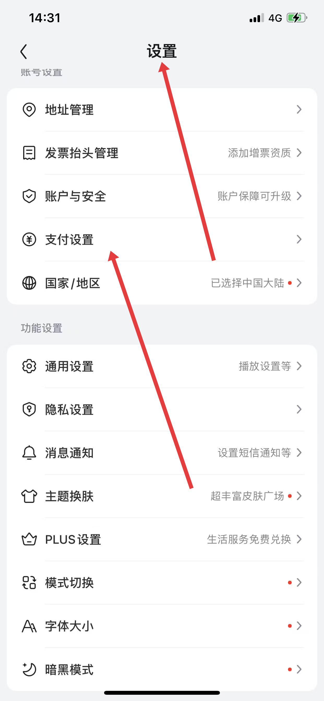 1、打开京东APP,进入设置界面后,点击支付设置。