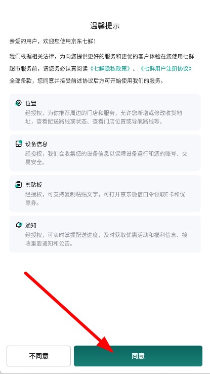 1、打开APP,在弹出的温馨提示框中点击同意按钮,进入主界面。
