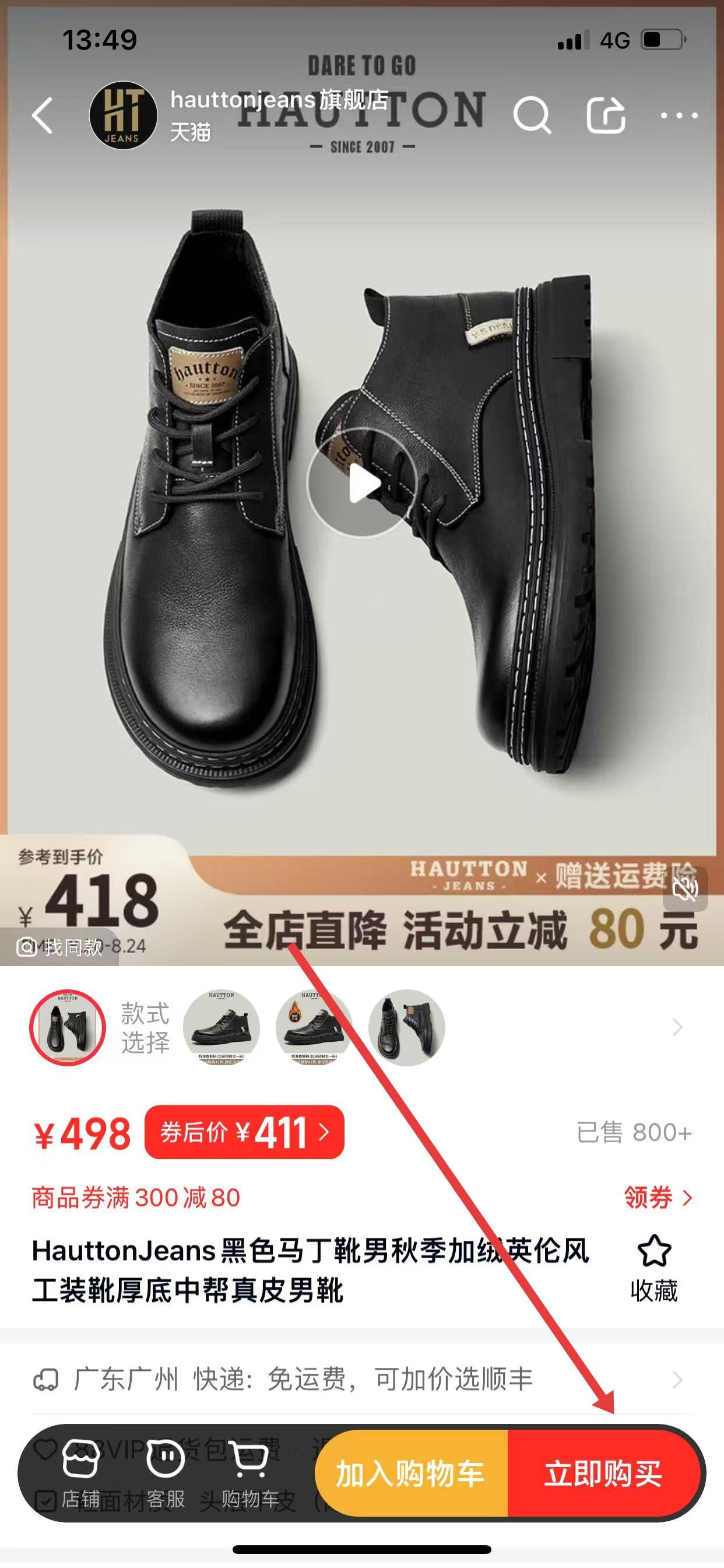 2、进入商品详情页,点击右下角的立即购买。