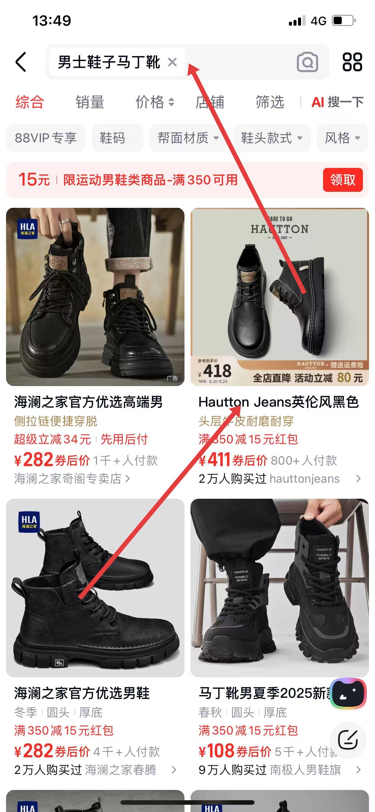 1、在搜索栏输入商品关键词,找到心仪商品,点击进入。