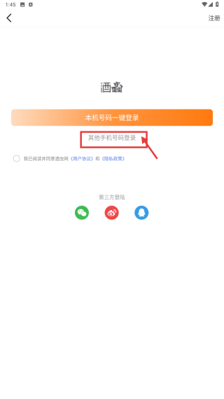3、选择其他手机号码登录模式,进入账号密码登录页。