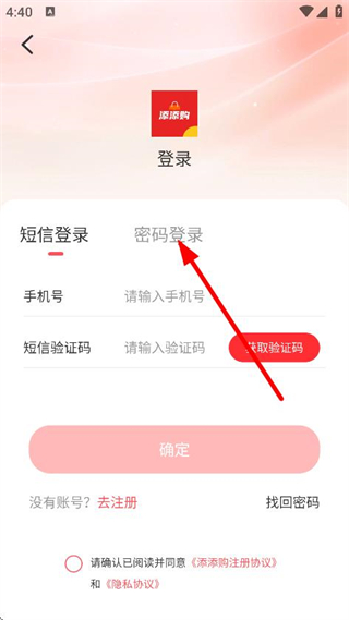 3、在登录页面,点击密码登录,切换到密码登录界面。