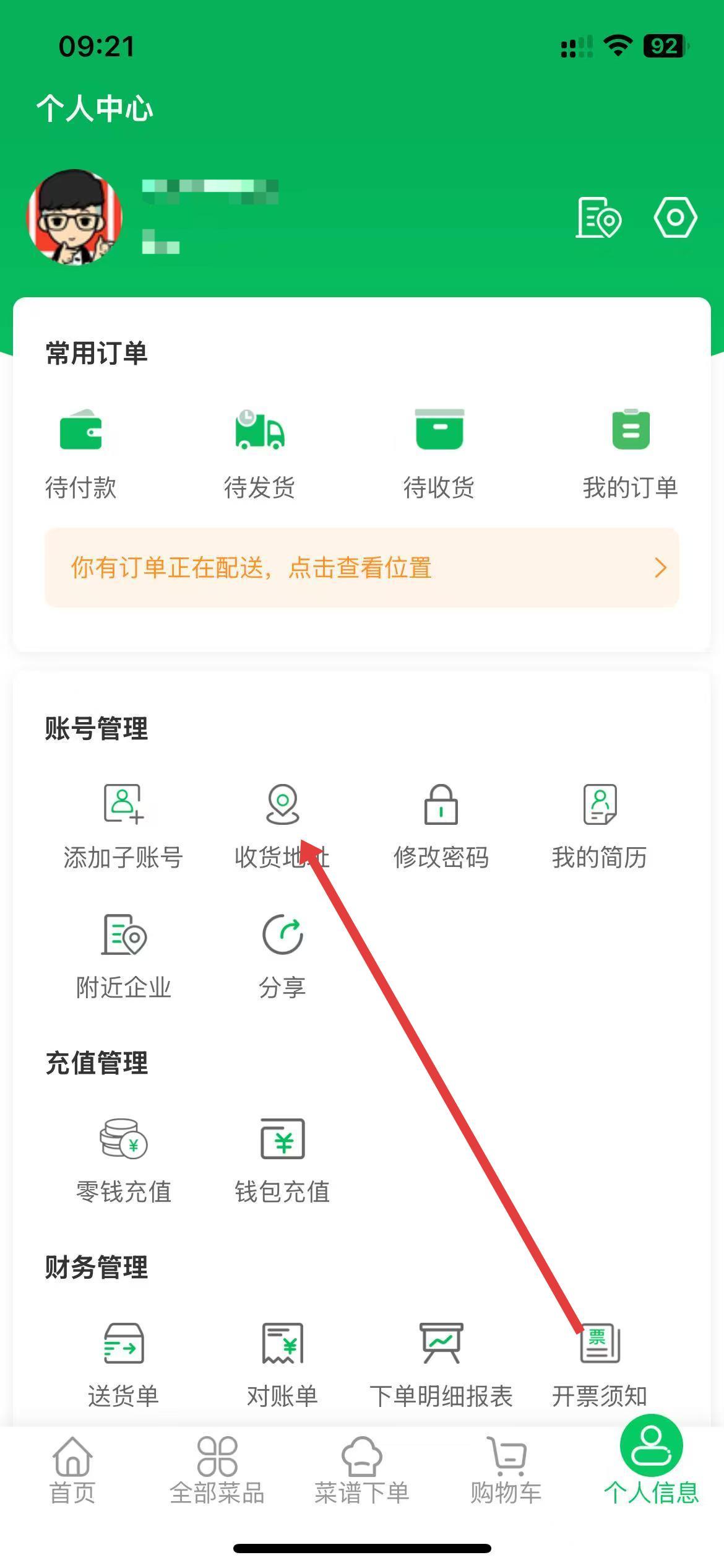 2、在个人中心的账号管理板块里,点击收货地址选项。