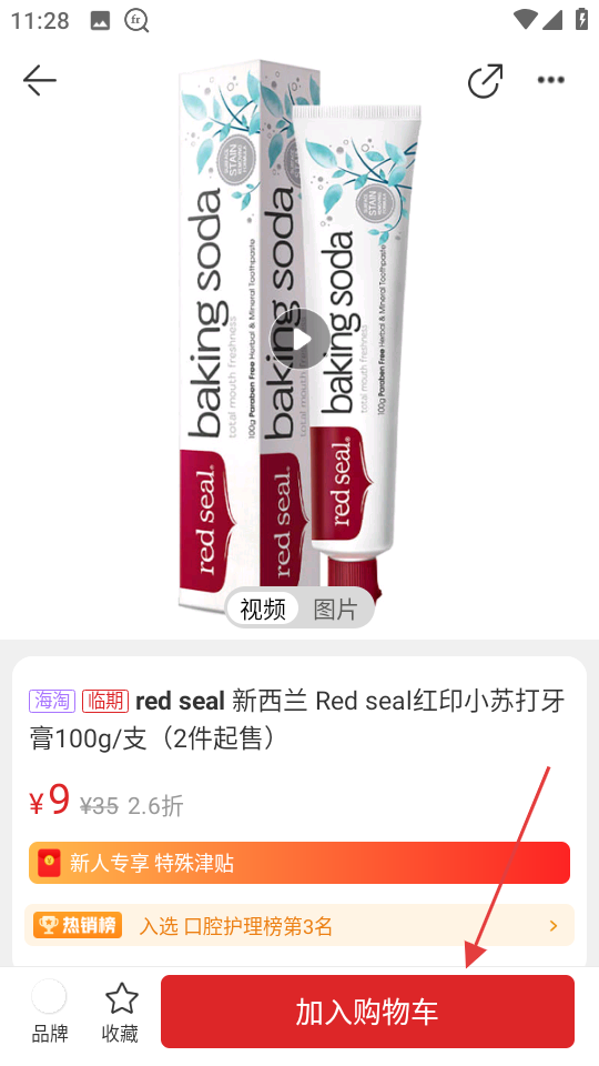 2、选择要购买的商品如redseal红印小苏打牙膏,进入商品详情页。