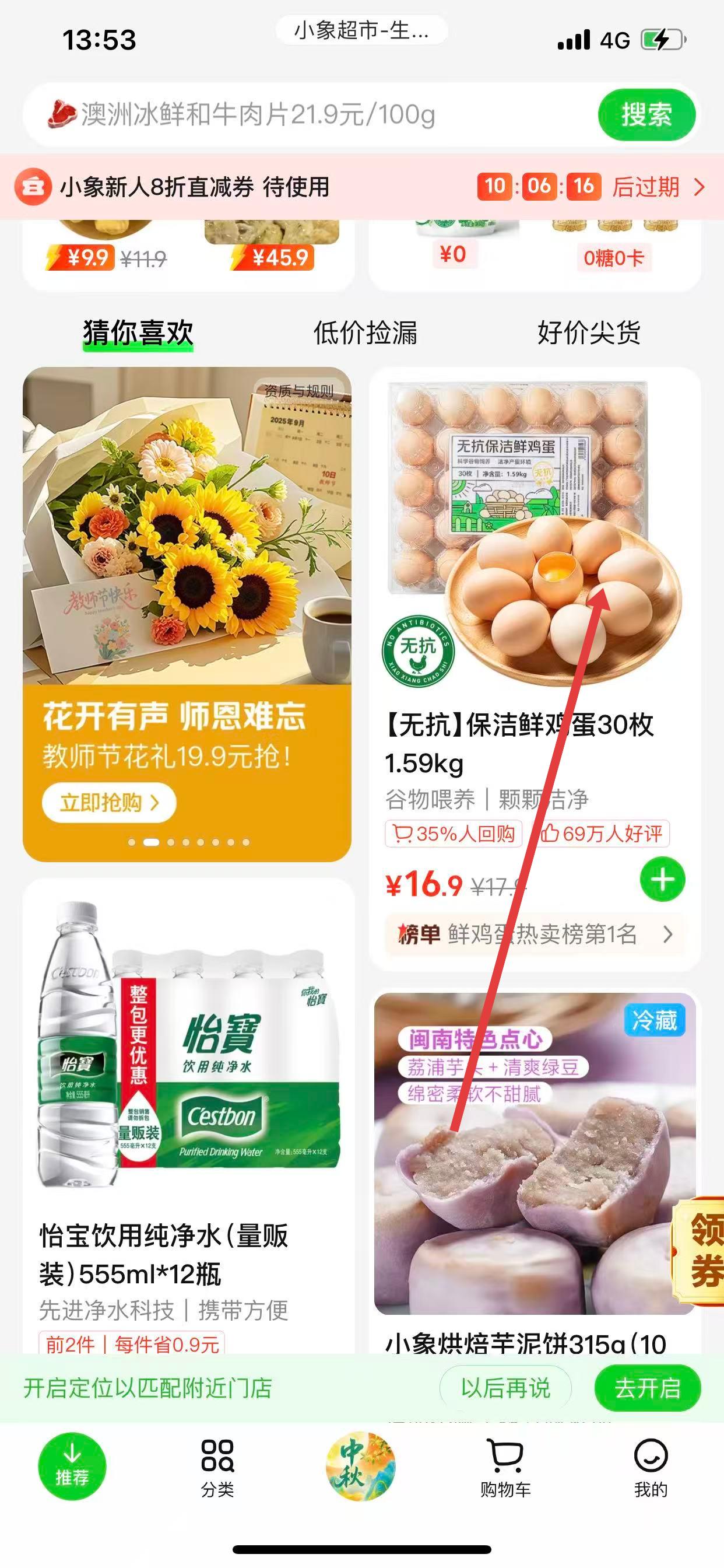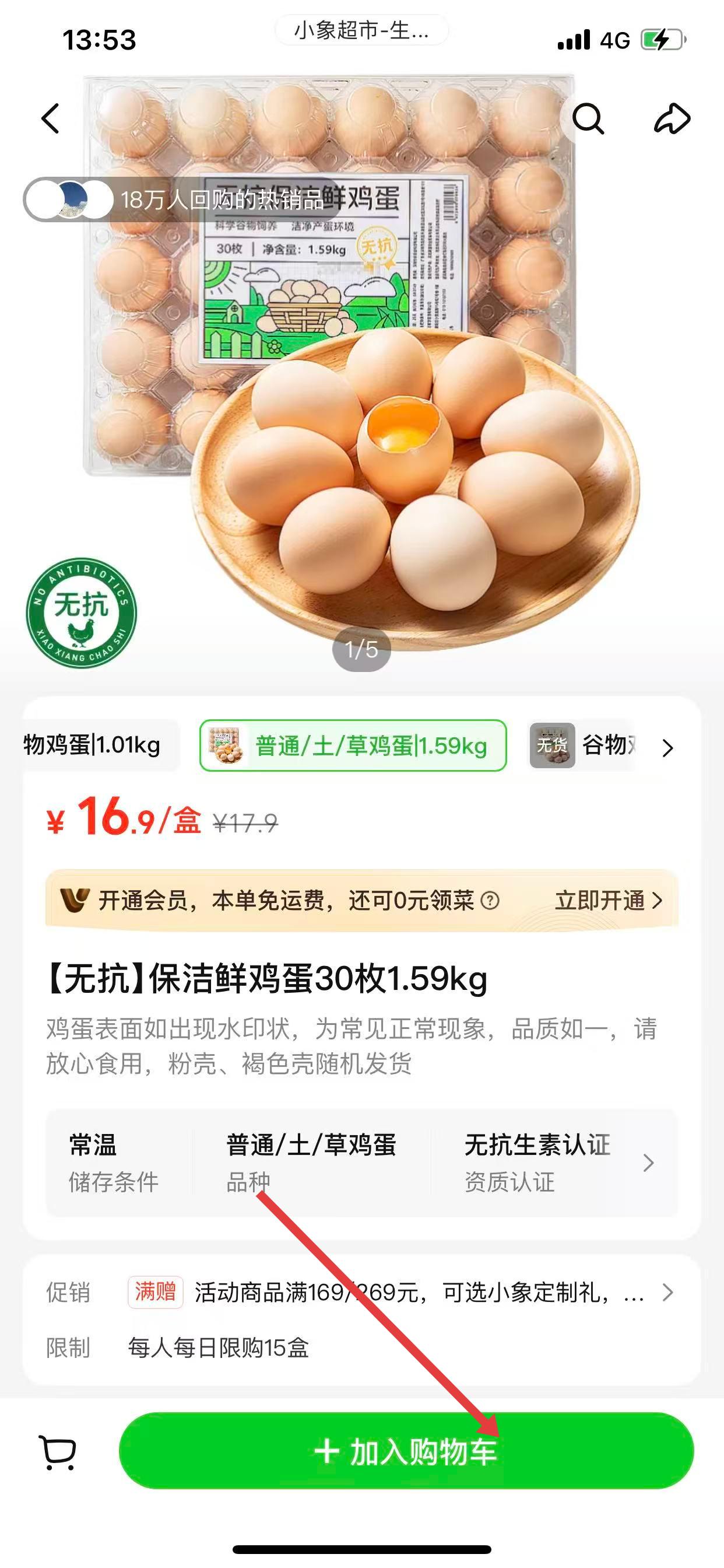 1、打开小象超市APP,在首页浏览商品,点击想要购买的商品,进入商品详情页。