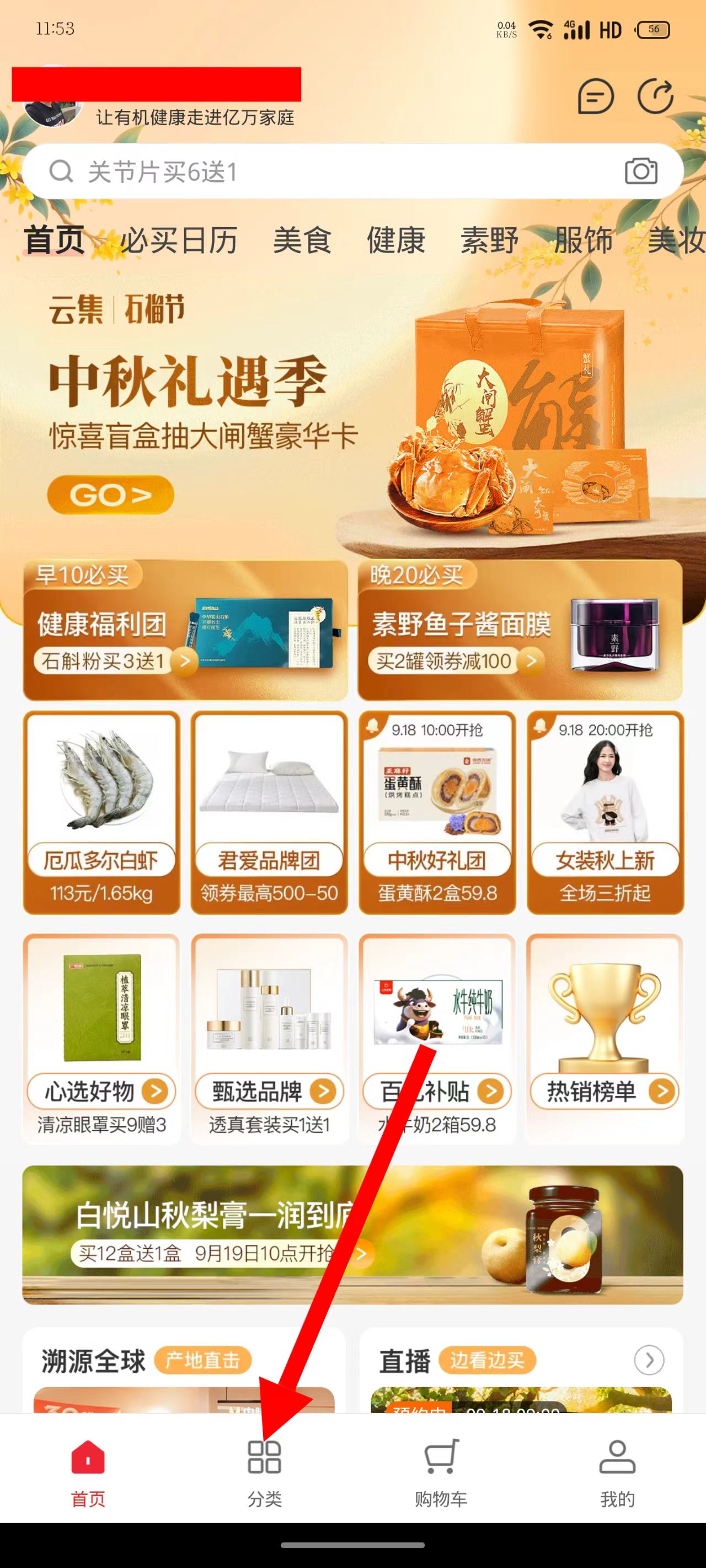 1、打开云集APP,点击底部分类选项,进入分类页面。