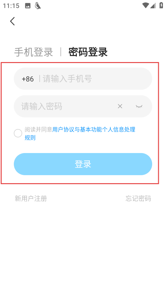 4、在密码登录页面,输入信息,勾选协议后点击登录,即可完成登录。