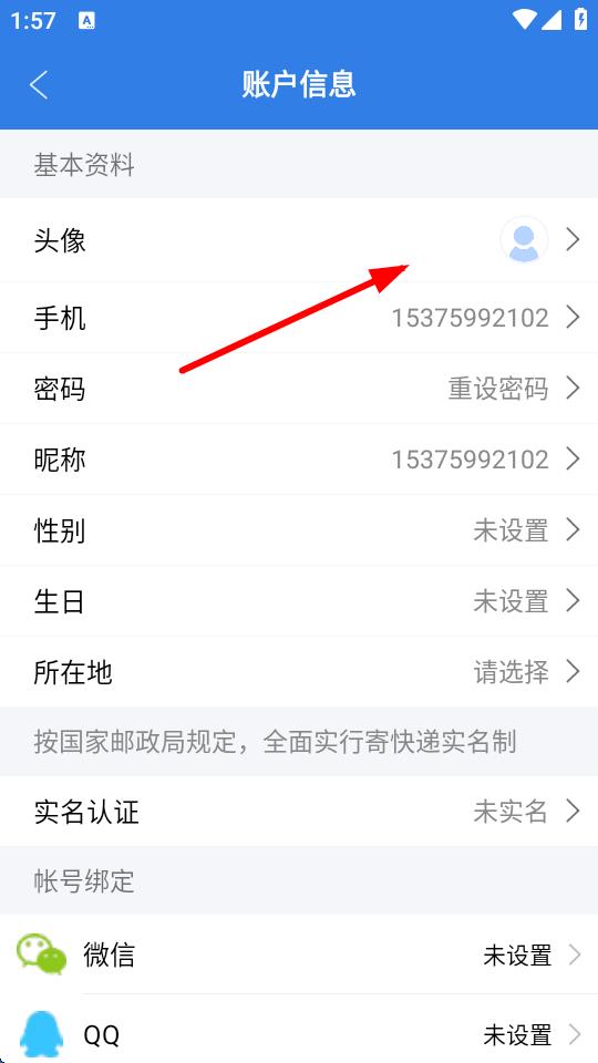 4、在账户信息页面里,点击头像右侧的箭头,进入头像修改界面,按照提示选择本地图片上传,即可完成头像修改。
