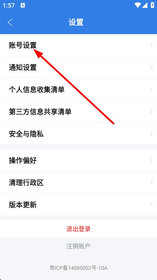 3、进入设置页面后,点击账号设置选项。