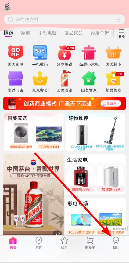 1、打开国美APP,点击底部导航栏中的我的选项,进入个人中心页面。