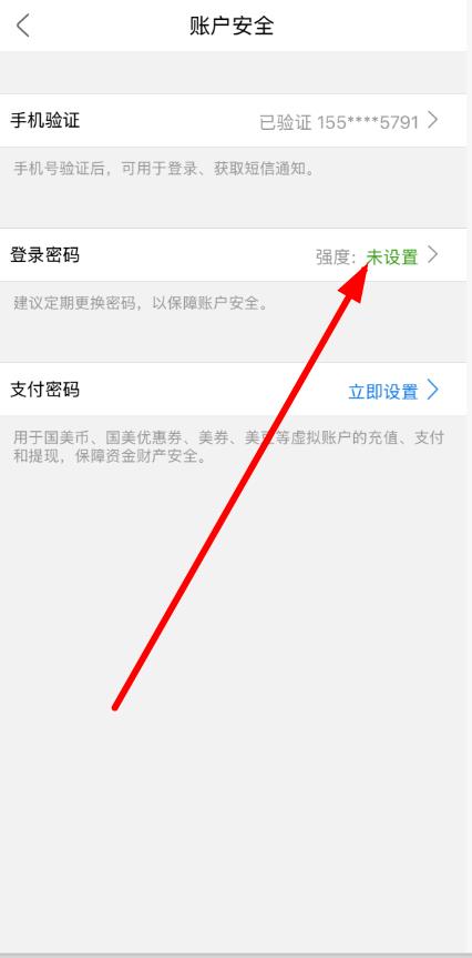 4、进入账户安全页面后,点击登录密码右侧的未设置箭头标识,按后续提示完成登录密码的设置操作。