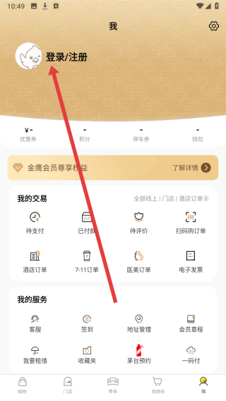 3、在进入到我的页面中,可以点击上方的登录进行账号登录操作。