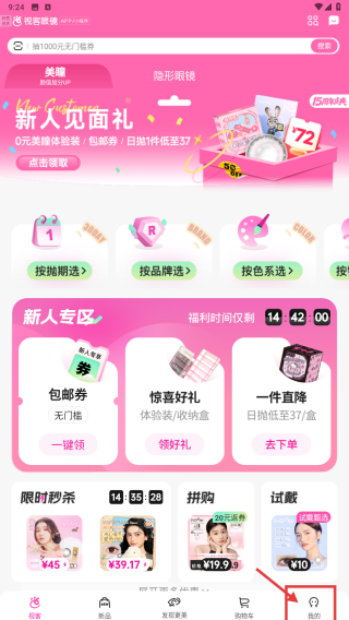 1、搜索挑选商品:打开软件后,在搜索栏输入品牌、商品类型美瞳、框架眼镜,或直接浏览分类栏目,找到心仪商品后点击查看详情与参数。