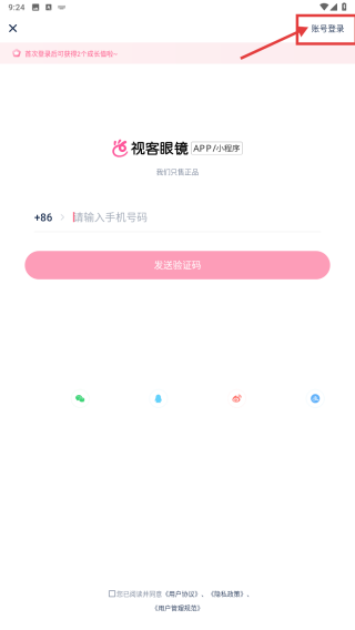 3、在登录方式选择中,点击账号登录选项,进入密码登录页。