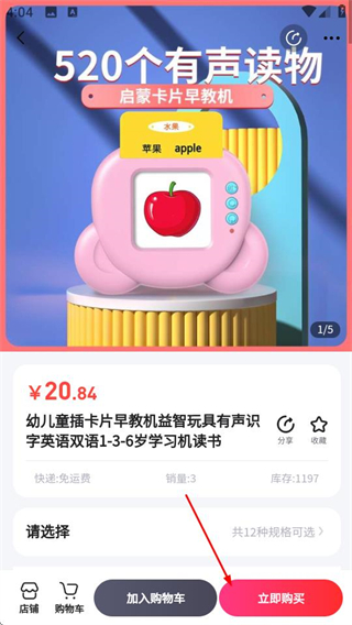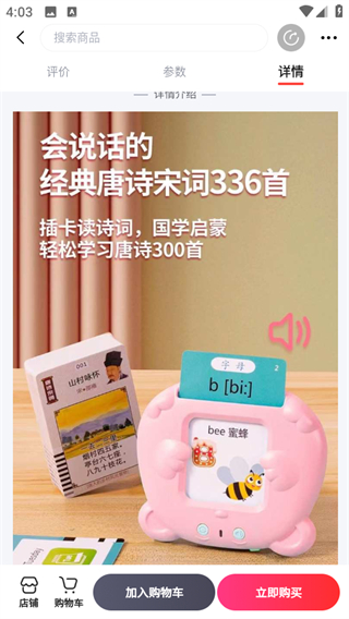 4、在商品详情页,点击立即购买按钮,可完成购买流程。