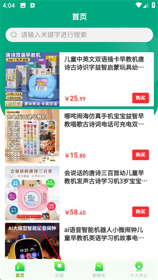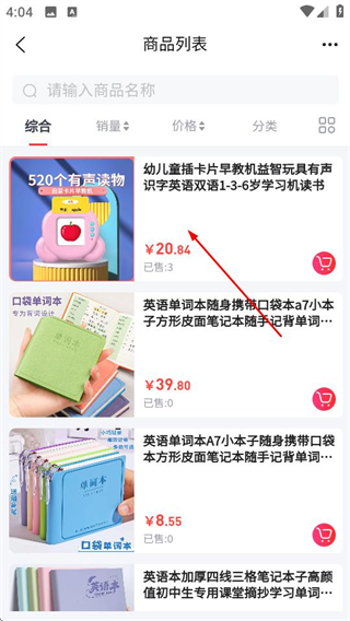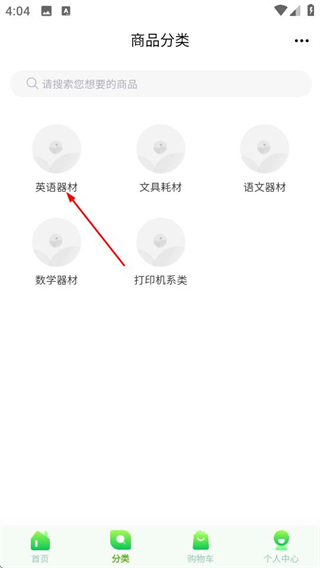 2、在商品分类页面,点击英语器材选项,进入对应商品列表页面。