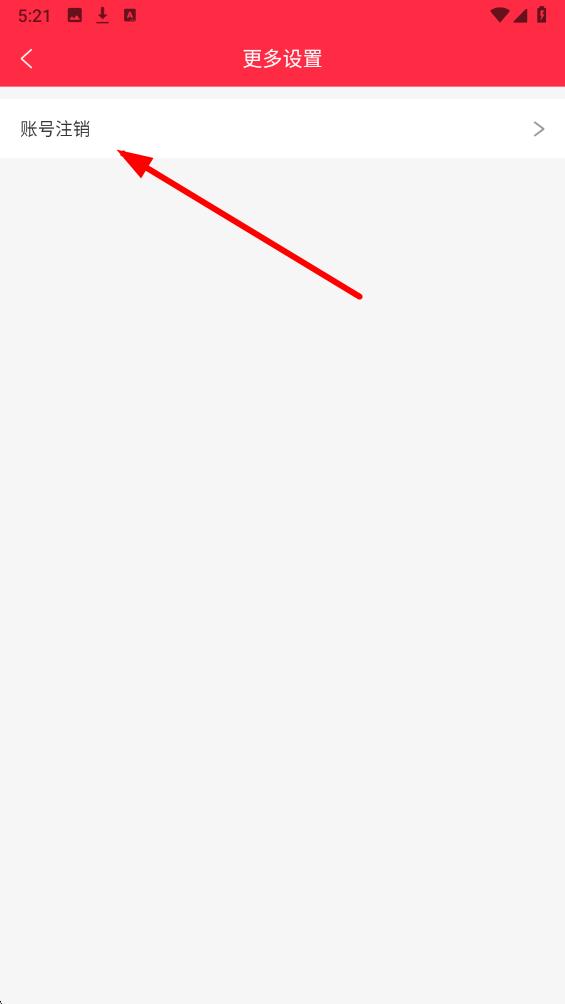 4、更多设置页面找到账号注销选项并点击,按照app后续给出的提示和流程操作,完成账号注销,注意注销后账号无法恢复。