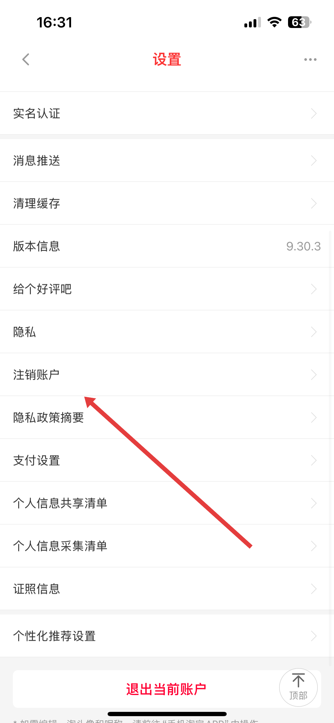 2、在设置页面中找到注销账户的选项,点击该选项进入注销流程页面。
