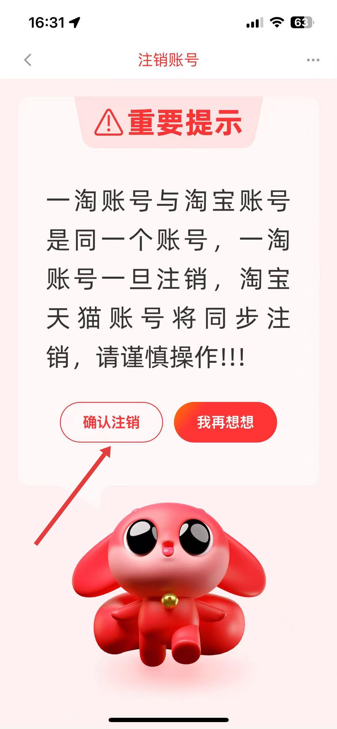 3、在注销账号页面会看到重要提示,明确一淘账号与淘宝天猫账号关联注销的情况,若确定注销点击确认注销按钮即可。