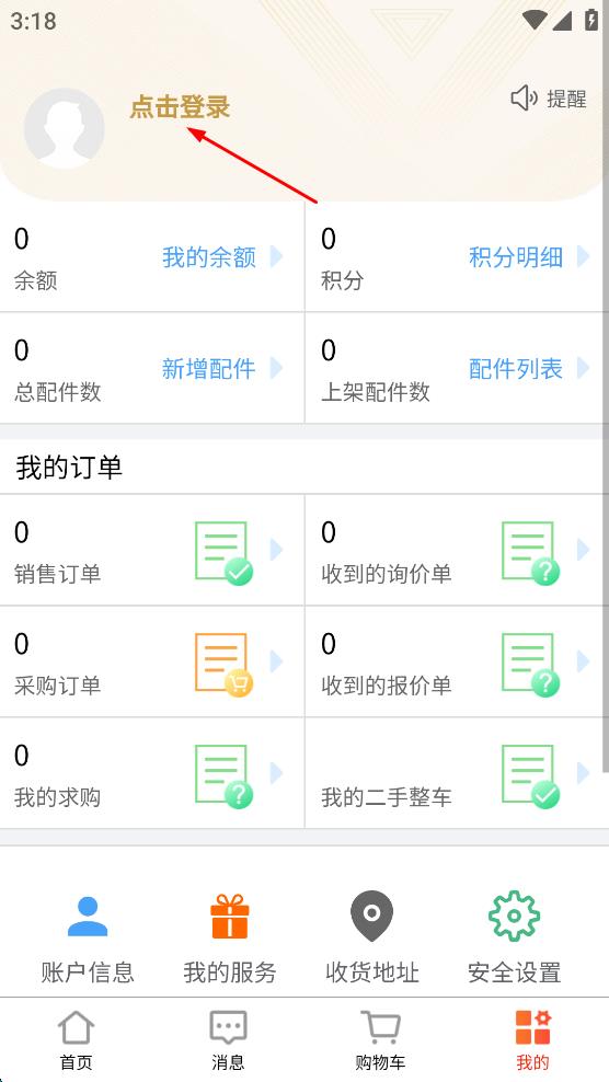 3、在个人页面中,找到上方的“点击登录”按钮,点击该按钮,进入登录汇配页面。