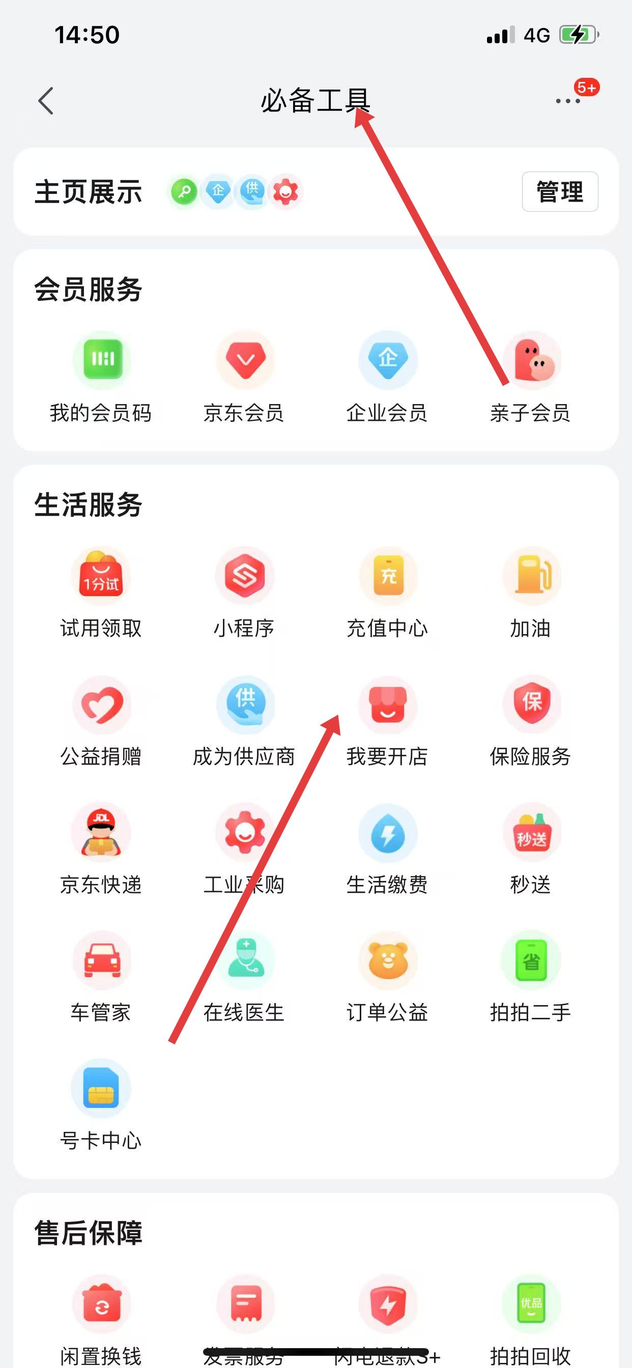 1、打开京东APP,找到必备工具板块,点击我要开店。