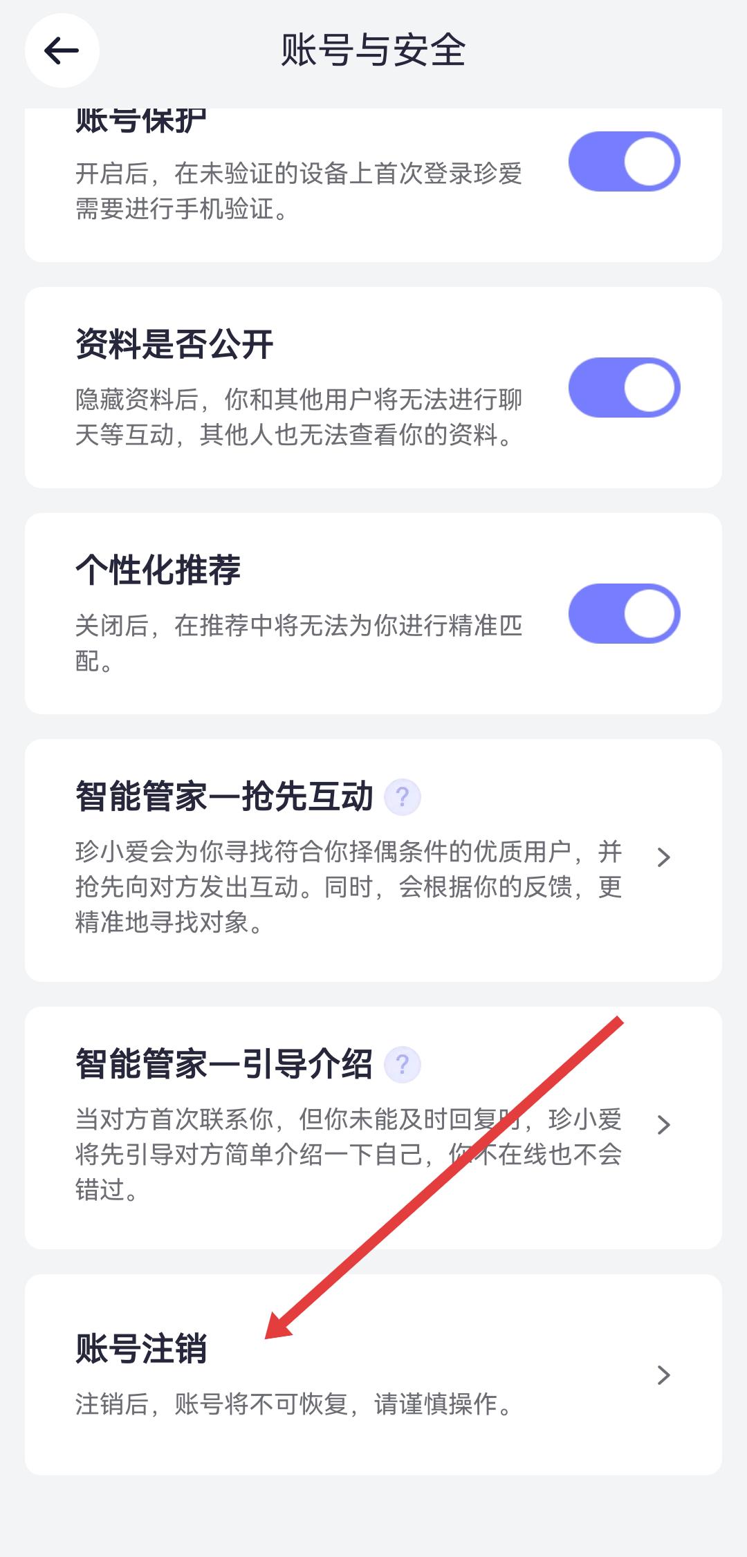 3、在账号与安全的页面,点击账号注销,进入账号注销流程。