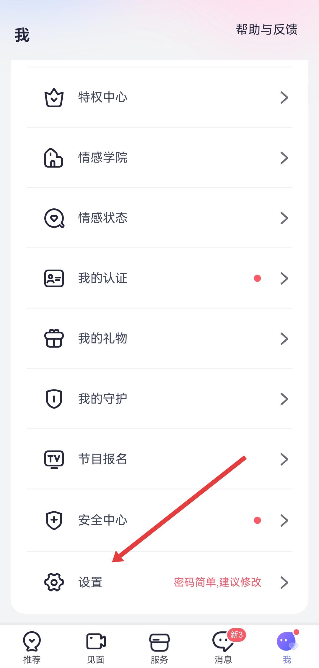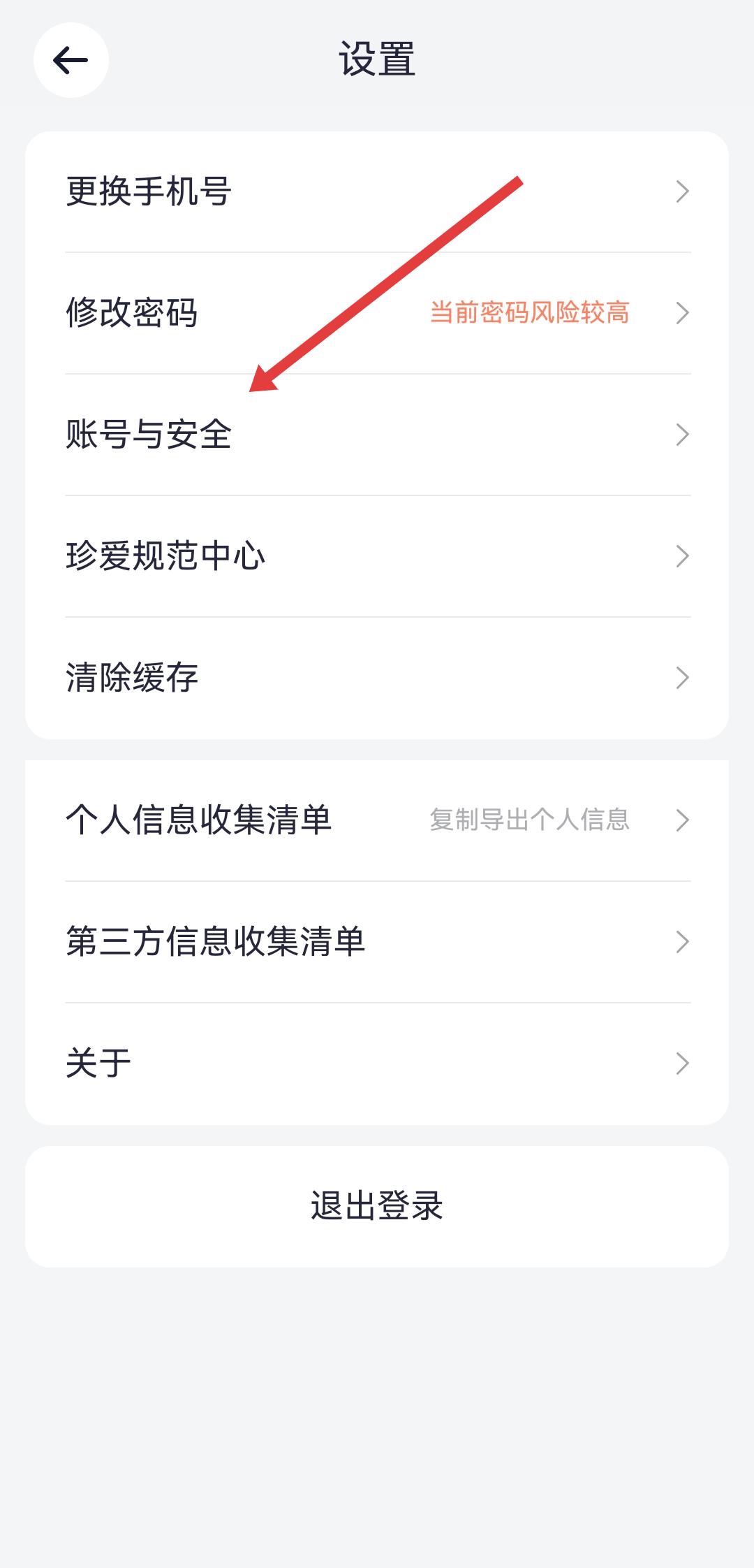 2、在设置页面,点击账号与安全的按钮,进入账号与安全界面。