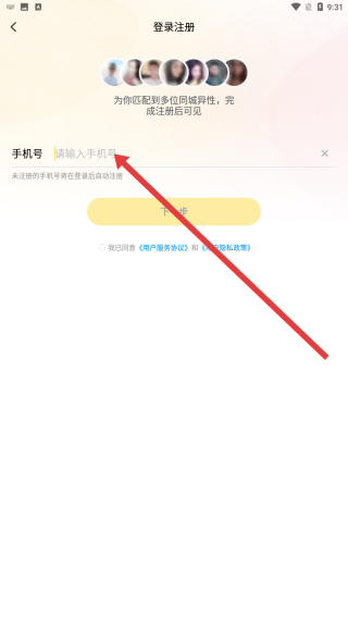 3、在登录注册页面中,可以输入手机号登录若手机号没有注册,可以直接注册登录。