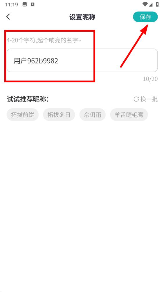 4、在设置昵称界面,删除原有的用户名,输入想要设置的新用户名,然后点击右上角的保存按钮,即可成功修改用户名。
