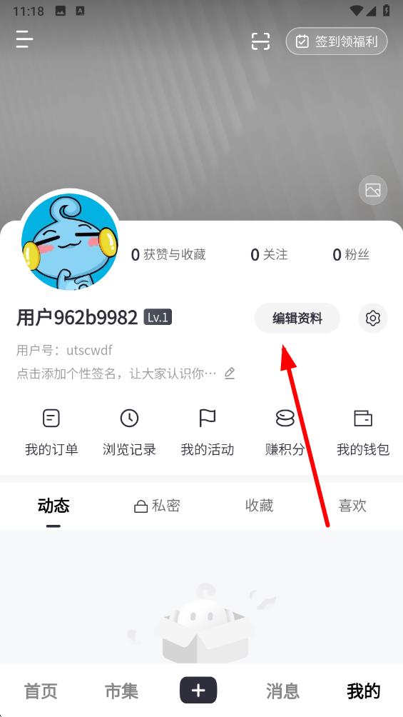 2、在个人页面中,点击编辑资料按钮,进入编辑个人信息界面。