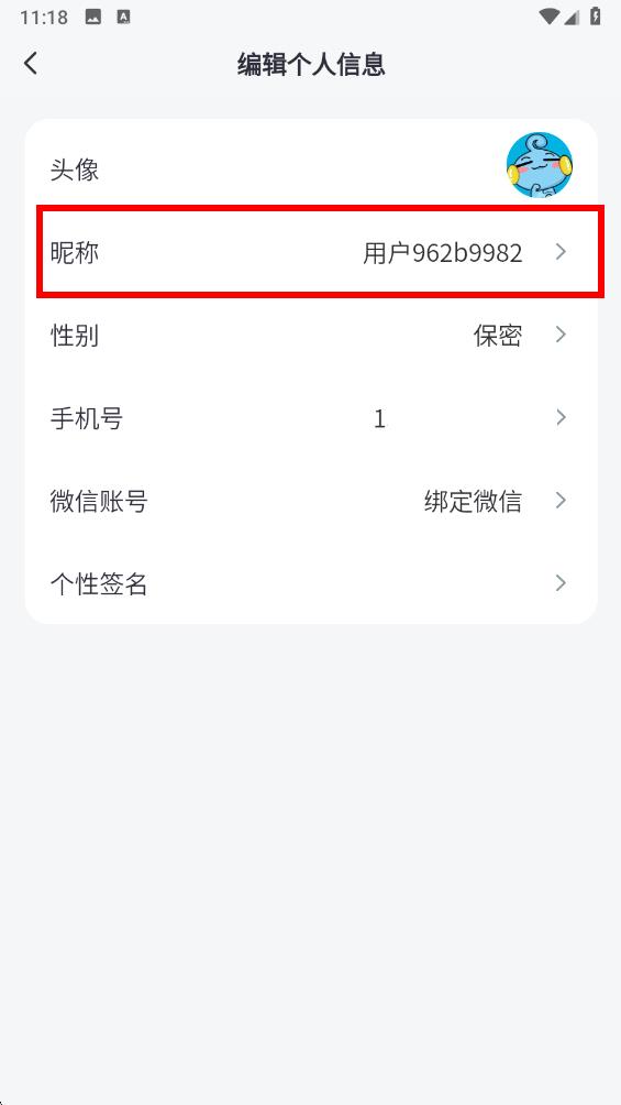 3、在编辑个人信息界面,点击昵称选项,进入设置昵称界面。