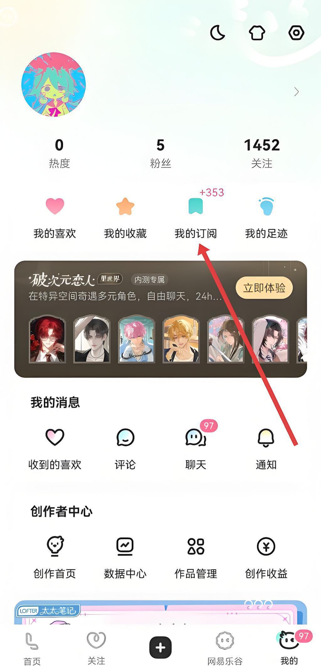 1、打开LOFTER APP,进入我的个人中心页面,点击我的订阅选项,进入已订阅的合集列表。