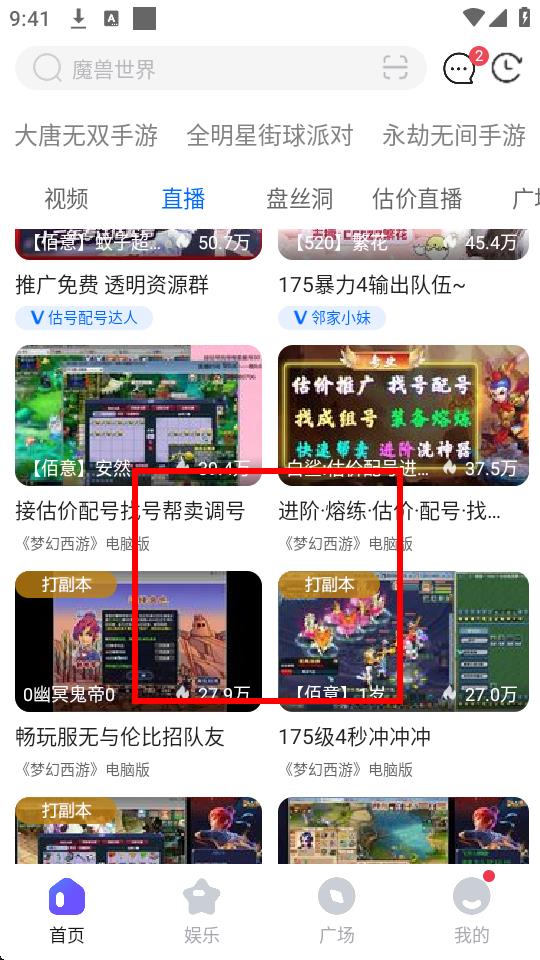 3、在直播分类页面,浏览选择感兴趣的直播内容,比如梦幻西游电脑版直播。
