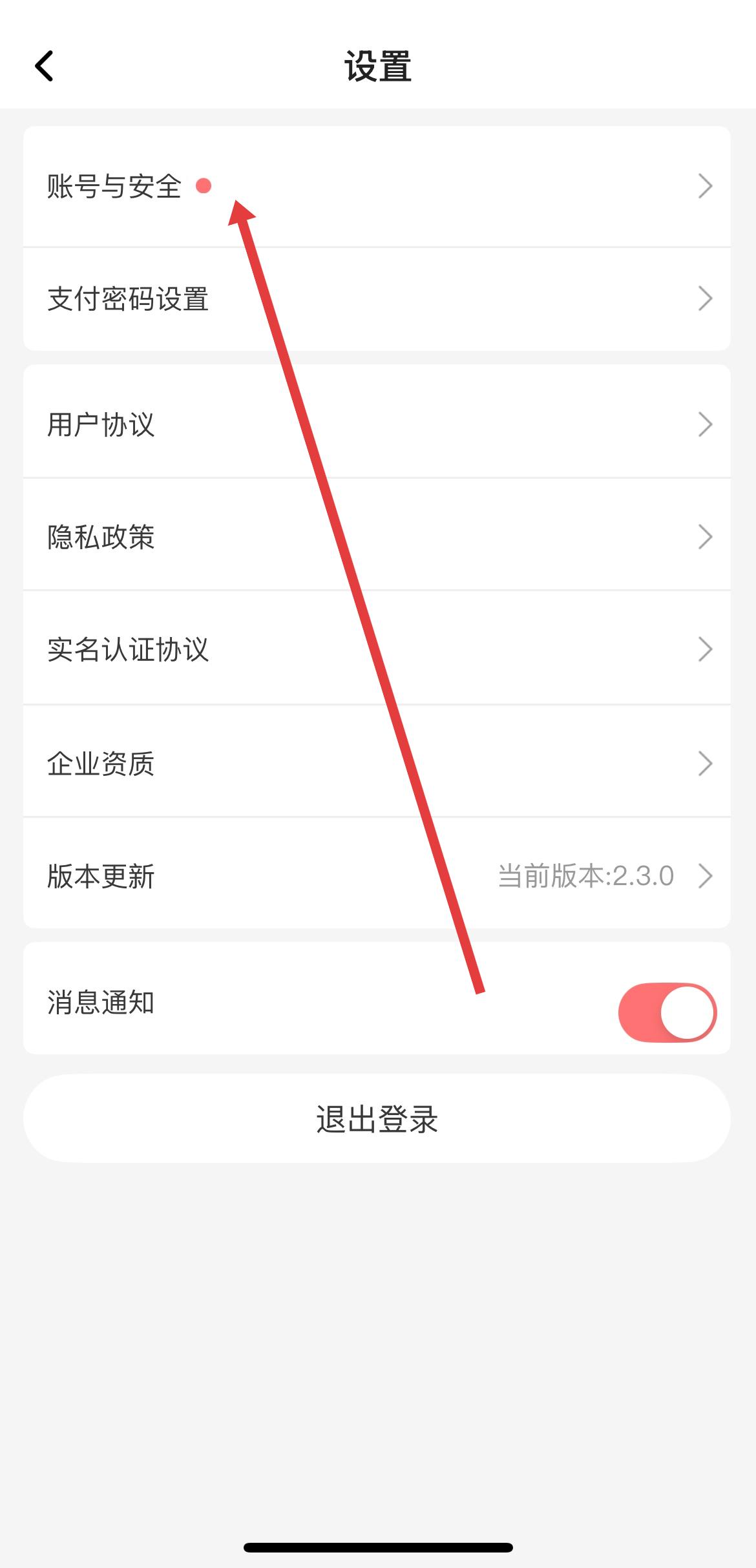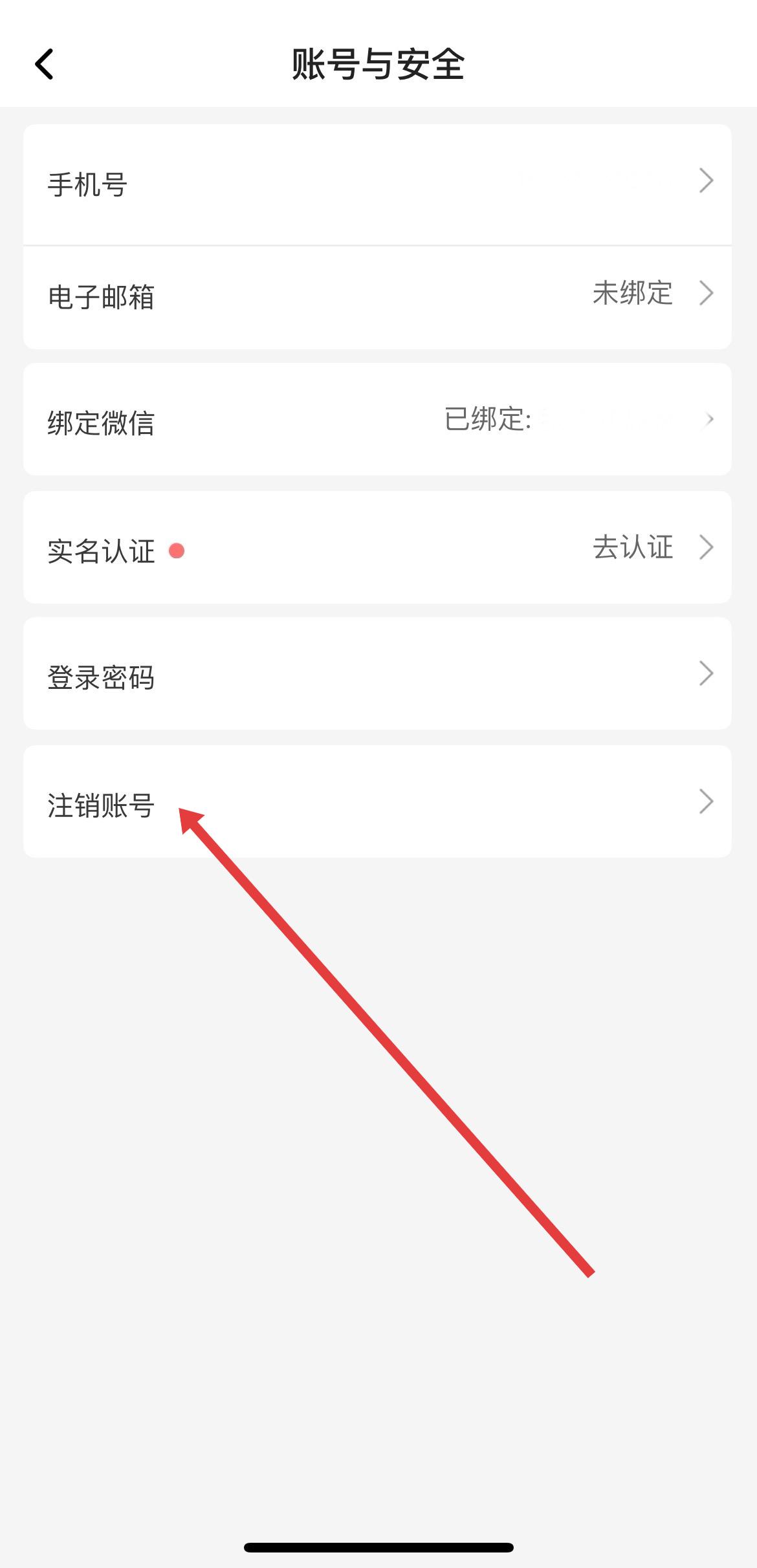 3、进入账号与安全页面后,点击底部的注销账号,按照页面提示完成后续注销操作。