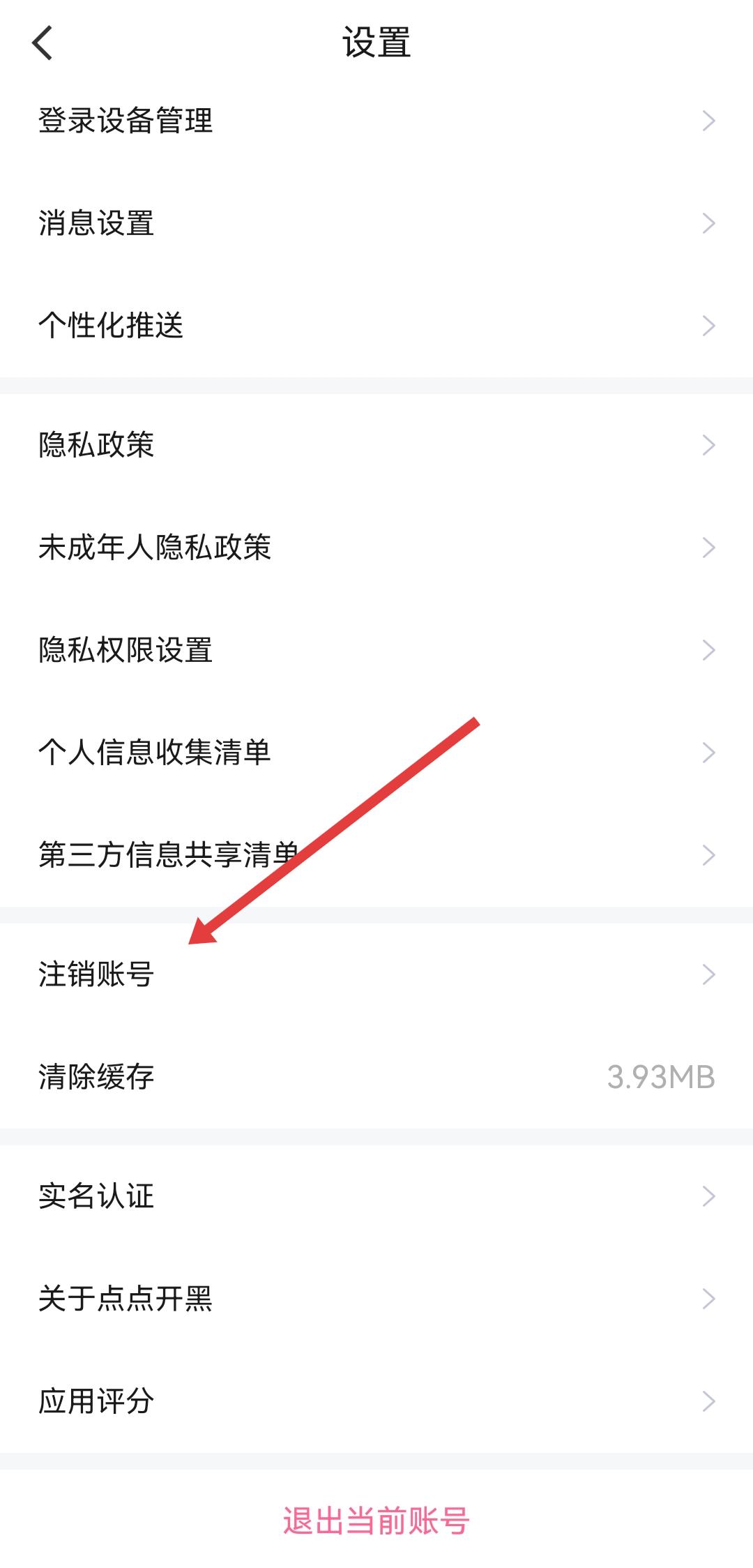 2、在设置页面中,找到并点击注销账号选项,进入账号注销说明页。
