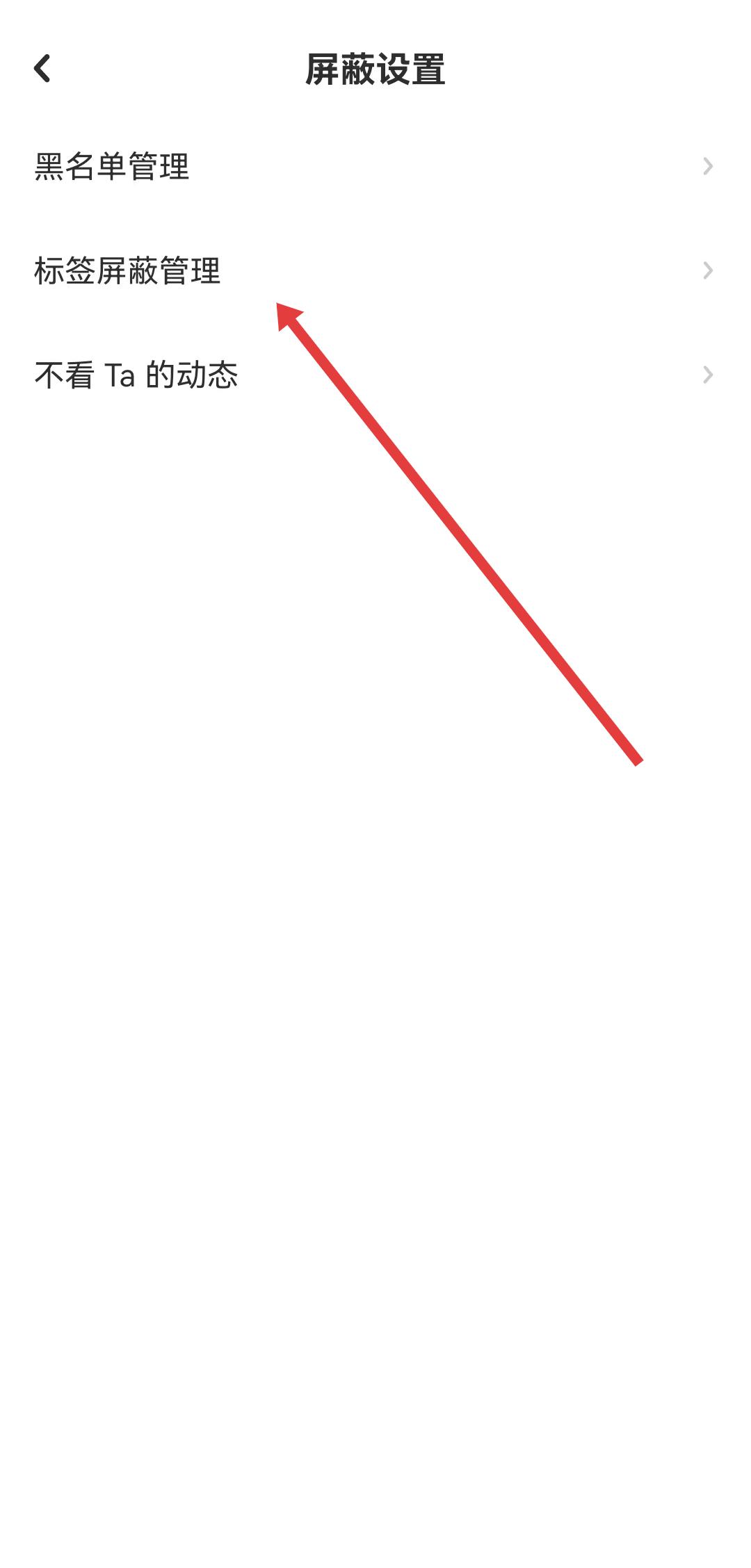 3、在屏蔽设置界面中,点击标签屏蔽管理选项,即可进入标签屏蔽设置页面,按提示操作屏蔽不想看到的tag。