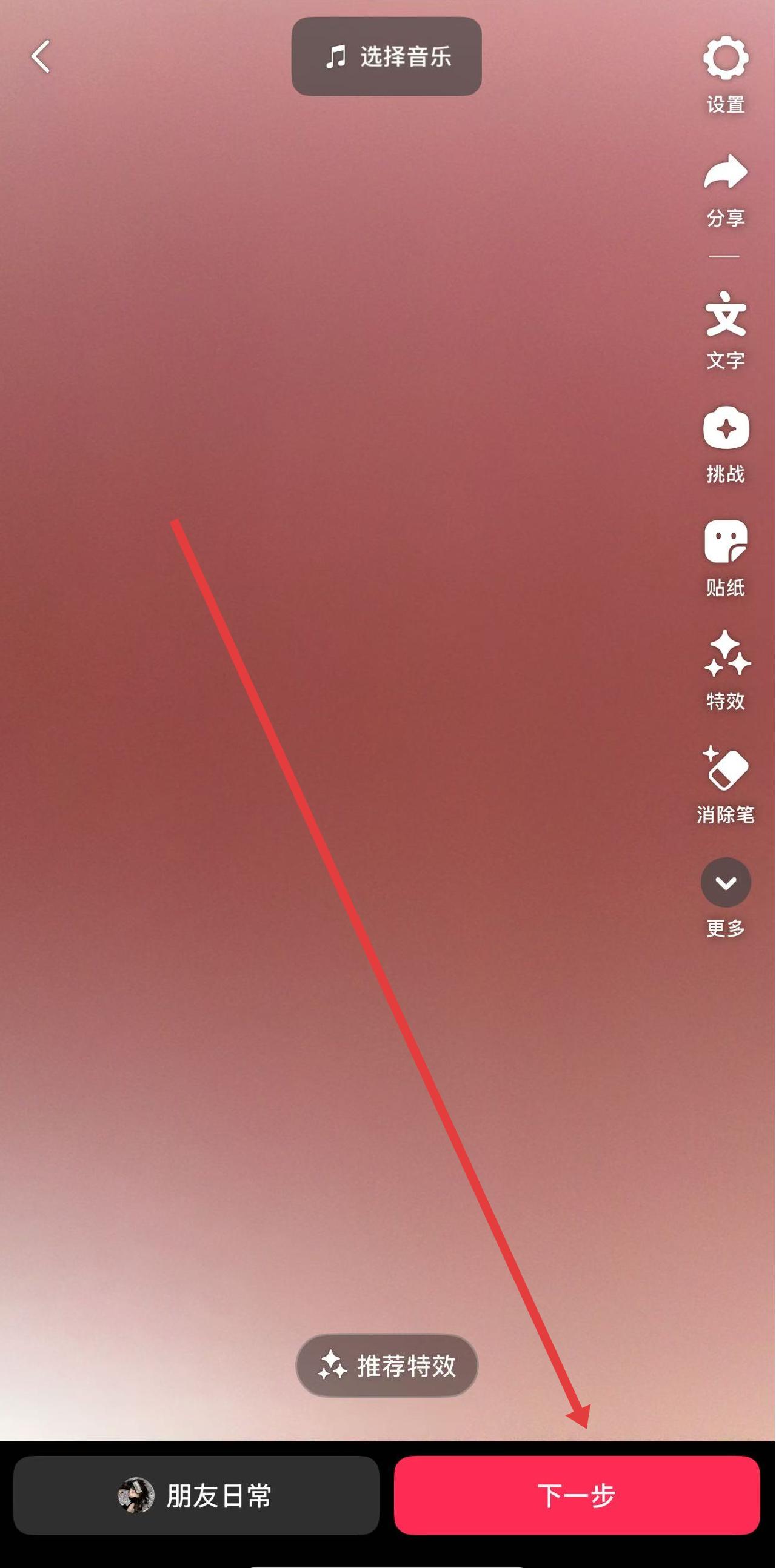 2、内容编辑好后,点击下一步,进入发布设置页,填写作品描述、添加话题、@好友,设置可见范围等参数。