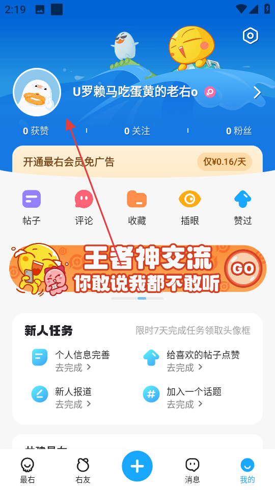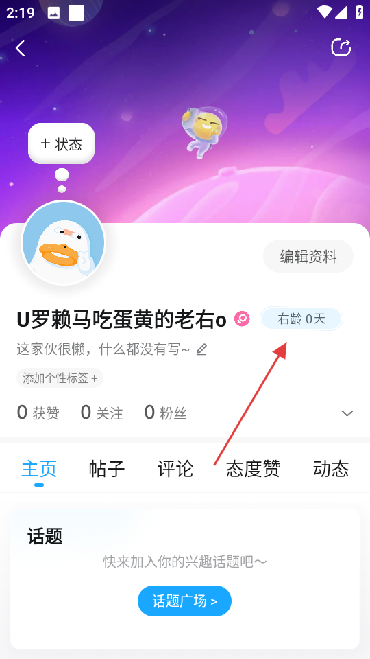 3、在个人主页,点击右龄,查看右龄相关信息。
