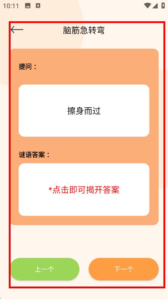 3、查看【提问】内容思考答案,【 点击即可揭开答案】查看谜底,还能用【上一个】【下一个】切换题目。