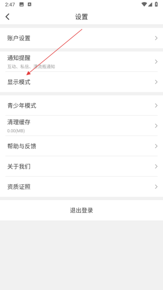 3、在设置界面里,找到显示模式选项并点击,进入显示模式设置页面。