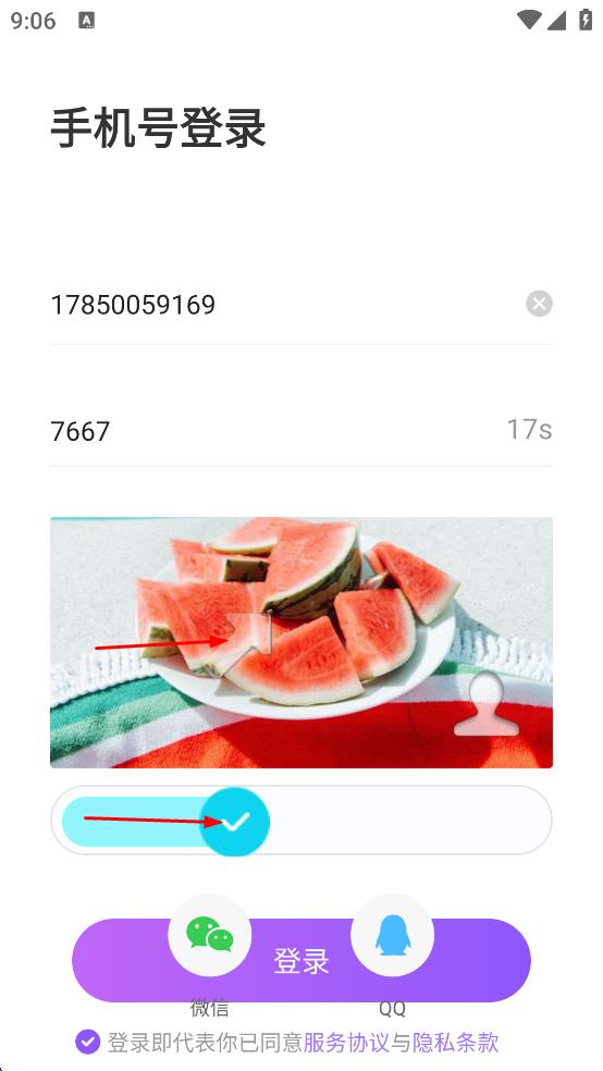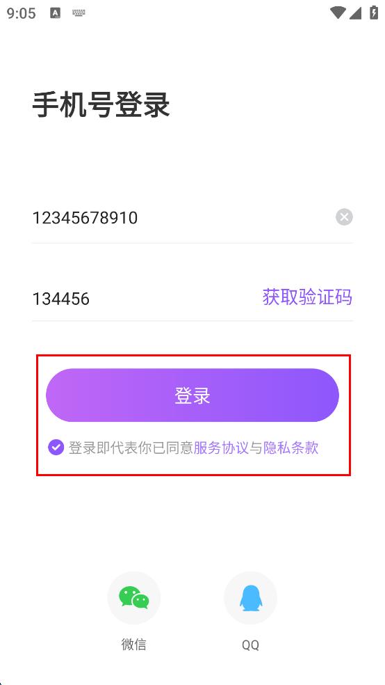 3、然后勾选“登录即代表你已同意服务协议与隐私条款”,点击“登录”按钮。