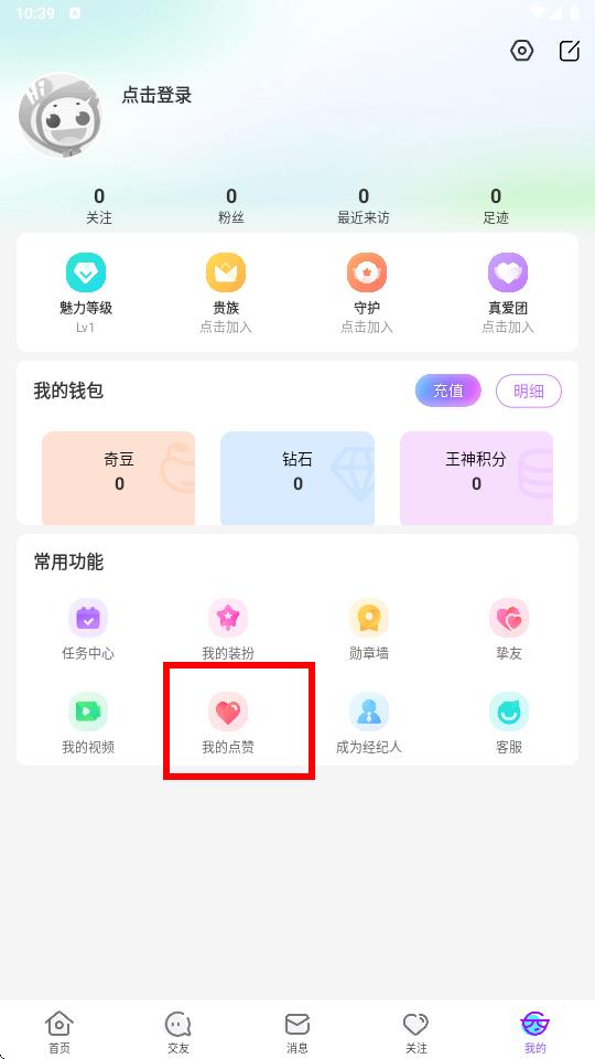 2、在个人界面的常用功能区域,找到并点击我的点赞按键。