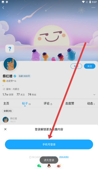 3、完成关注操作需要点击下方的手机号登录,在登录后完成执行。