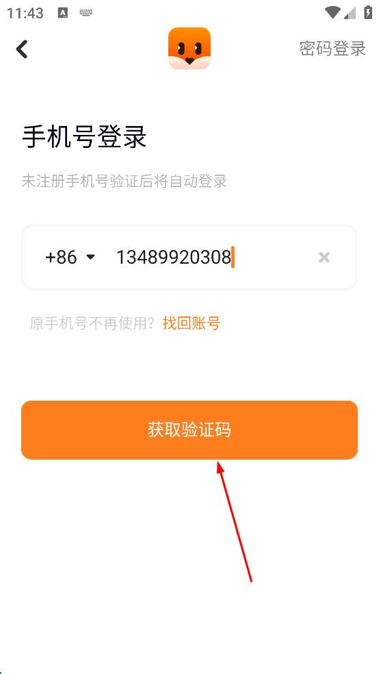 2、在登录界面,选择手机号登录,输入要使用的手机号码,然后点击“获取验证码”按钮,准备接收验证码进行登录验证。