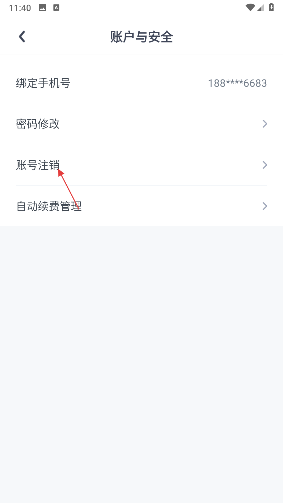 4、在账户安全页面,点击账号注销选项,按提示提示完成注销流程。
