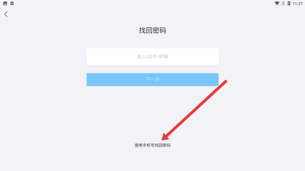2、在进入到找回密码页面中,可以点击使用手机号找回密码切换找回方式。