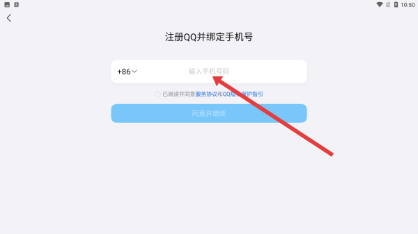 3、在注册页面中,在输入框中输入手机号码注册的同时绑定手机号。